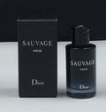 - *Labeling*: "SAUVAGE" in big white letters, "PARFUM" written below it, and "Dior" at the bottom of the bottle.